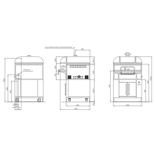 Rijskast Onderstel | Italforni CARUSO CA9 | Wielen (Geremd) | 1475x1350x860(h)mm