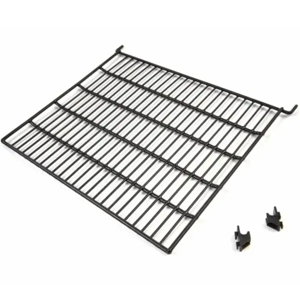 Deze zwarte roosterplank is speciaal ontworpen voor gebruik in koelvitrines. De set wordt geleverd met twee clips die zorgen voor een stevige bevestiging. Het product is eenvoudig te plaatsen en biedt een praktische oplossing voor het organiseren van je koelvitrine.