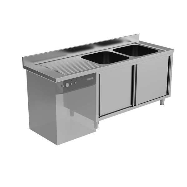 RVS Spoeltafel | Rechtse Uitvoering | Achteropstand | 1 Deur + 1 Spoelbak | 1200x700x850(h)mm