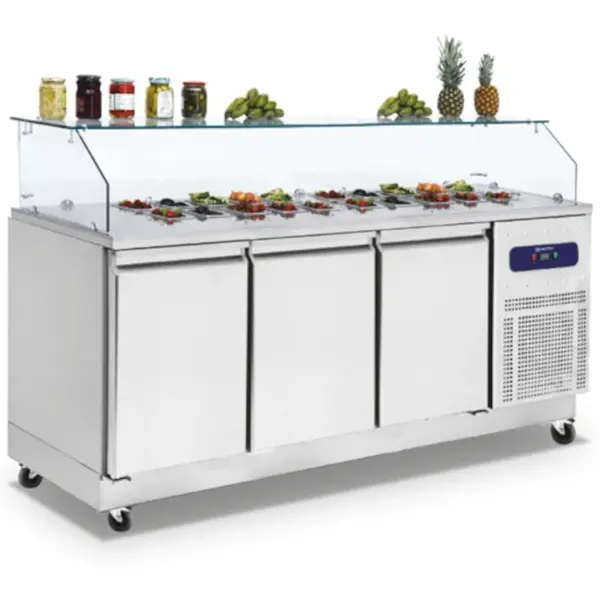 Saladette | 3 Deuren (1/1 GN) | Boven 8x 1/6 GN | -2°C/+8°C | Geforceerd | Glasopzet | Wielen (Geremd) | 1865x700x1300(h)mm