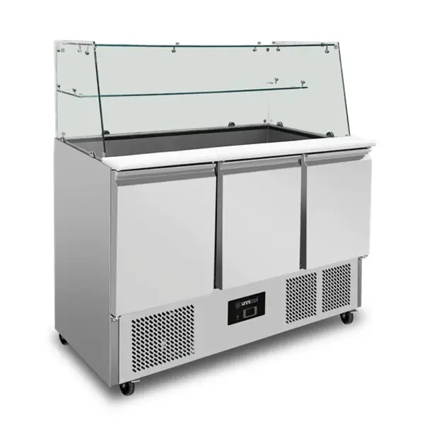 Saladette | 368L | 3 Deuren (1/1 GN) | Boven 4x 1/1 GN | +2°C/+8°C | Statisch | Glasopzet + Snijblad | 1370x700x850/1310(h)mm