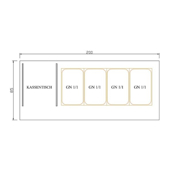 Saladette werkbank + kast element | met luchtcirculatie | 4x GN 1/1 | 2000x850x1300(h)mm
