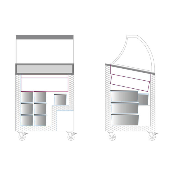 De schepijsvitrines uit deze serie hebben platte schuifdeksels die gemakkelijk toegang geven tot het geëtaleerde ijs en tegelijkertijd het apparaat extra helpen isoleren wanneer het niet in gebruik is (energiebesparend). De glasopzet met gebogen voorruit, het stevige blad bovenop, de standaard wielen en compacte formaat zorgen voor extra gebruiksgemak en flexibiliteit. De buitenkant met grote strakke oppervlakken is daarnaast ideaal geschikt voor branding/bestickering om extra aandacht en verkopen te genereren!