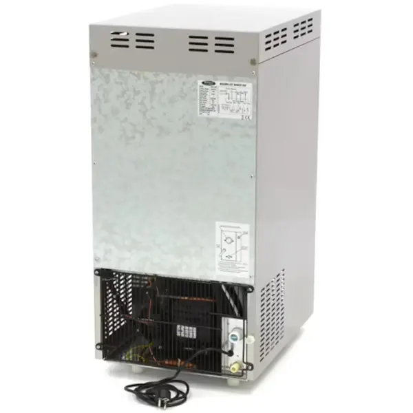 De behuizing is vervaardigd uit hoogwaardig RVS in combinatie met aluminium, wat zorgt voor een lange levensduur en eenvoudige reiniging. Dankzij de goede isolatie blijft het ijs langer op temperatuur in de opslagbunker. Het apparaat is voorzien van verstelbare pootjes voor een stabiele plaatsing en heeft compacte afmetingen, waardoor het apparaat eenvoudig onder een werkbank of counter te plaatsen is.