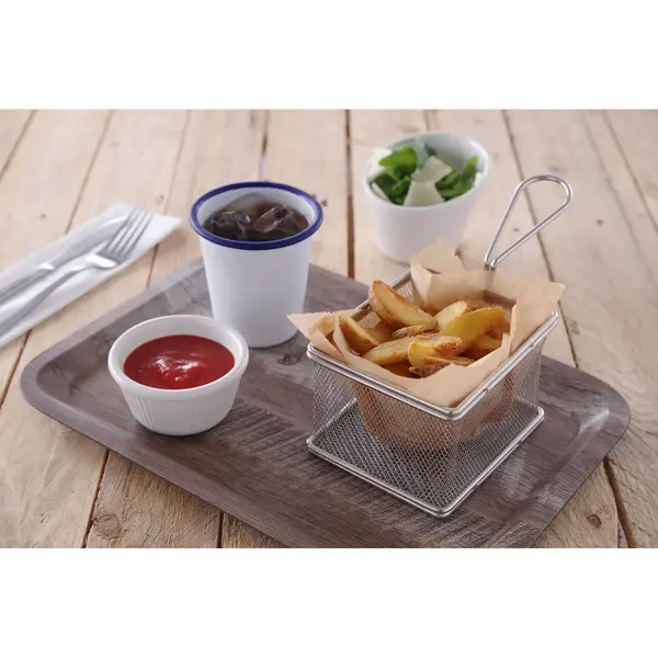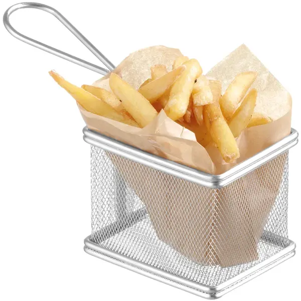 Deze HENDI serveermand van hoogwaardig RVS is ideaal voor het serveren van frietjes, snacks en andere gefrituurde gerechten. Het duurzame materiaal is bestand tegen dagelijks gebruik en behoudt zijn glans en kwaliteit. Het praktische ontwerp maakt de mand eenvoudig te hanteren en zorgt voor een nette en aantrekkelijke presentatie, zowel in professionele keukens als thuis.