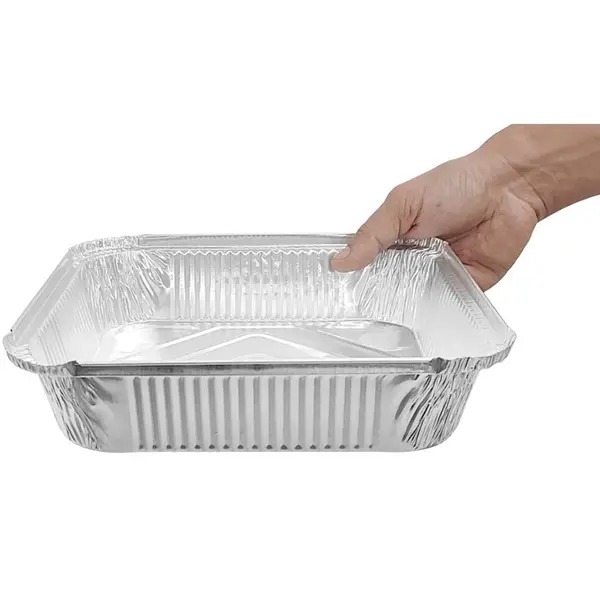 Deze diepe serveerschalen van Fiesta Recyclable zijn ideaal voor afhaal- en bezorgdiensten en hebben een royale inhoud van 2,1 liter. Gemaakt van aluminium bieden ze uitstekende isolatie om voedsel warm te houden tijdens transport en zijn ze ovenbestendig tot 230°C, zodat gerechten snel en eenvoudig kunnen worden opgewarmd. De serveerschalen zijn ook vriezerbestendig tot -29°C gedurende maximaal 1 maand en lekbestendig, zodat je veilig curries, pastagerechten of andere maaltijden kunt serveren zonder morsen. Na gebruik zijn ze recyclebaar, wat bijdraagt aan duurzamer afvalbeheer. De serveerschalen zijn stapelbaar voor ruimtebesparende opslag en worden geleverd in een verpakking van 200 stuks.