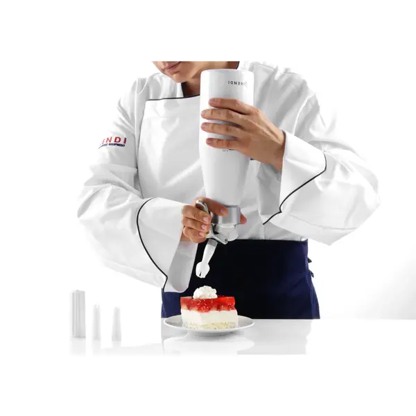 Let op, het slagroomapparaat wordt geleverd zonder slagroompatronen, deze zijn apart verkrijgbaar. Illustrerende afbeeldingen kunnen van uitvoeringen in afwijkend formaat of met afwijkende kleur zijn.