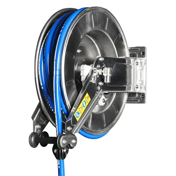 De HENNINK professionele slanghaspel van Saro is geschikt voor intensief gebruik en is vervaardigd uit hoogwaardig RVS (AISI-304/-303). De haspel heeft een diameter van 430 mm en is geschikt voor wand-, vloer- of plafondmontage. De automatische terugrolfunctie zorgt daarbij voor veilig en praktisch gebruik.