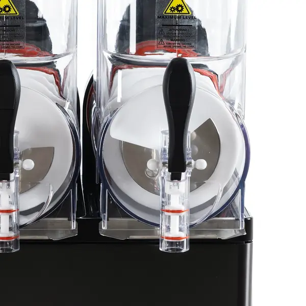 De slushmachine is verder voorzien van een sneluitgiftekranen en heeft diverse verwijderbare onderdelen, zoals de tanks en lekroosters, voor eenvoudige reiniging. De praktische lekbakken hebben bovendien een vlotterindicator, zodat duidelijk zichtbaar is wanneer deze moeten worden geleegd.