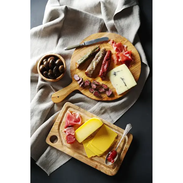 Deze HENDI snij- en serveerplank van olijfhout combineert functionaliteit met elegantie en is een prachtige aanvulling op iedere tafel. Het unieke ontwerp vormt een stijlvolle achtergrond voor snacks, charcuterie, kaas of fruit, terwijl het duurzame olijfhout zorgt voor langdurig gebruik. Iedere plank is uniek, met natuurlijke variaties in nerf, kleur en vorm.