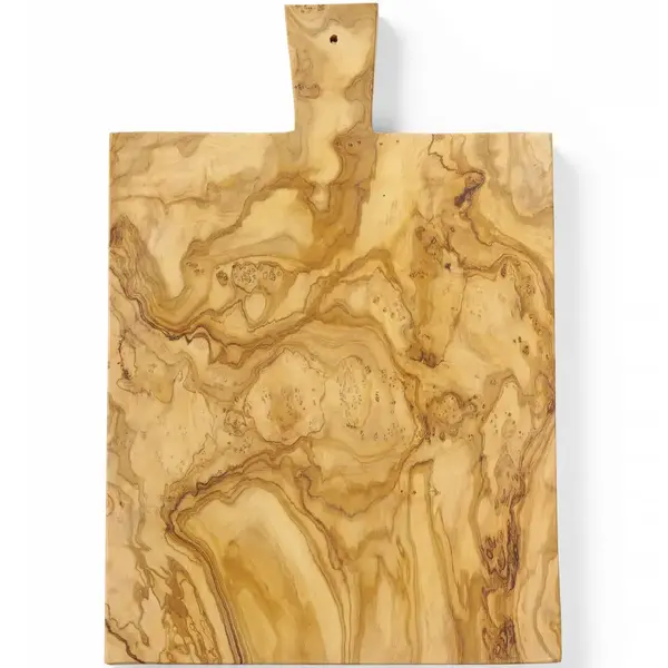 Gemaakt van geolied olijfhout, hard en dicht van structuur, met natuurlijke antibacteriële eigenschappen. Het hout neemt geen geuren of vlekken op en is bestand tegen zuren en vetten. Handwas wordt aanbevolen; af en toe inwrijven met olijf- of zonnebloemolie helpt scheuren voorkomen. Een luxe en praktische snij- en serveeroplossing voor zowel thuis als professioneel gebruik.