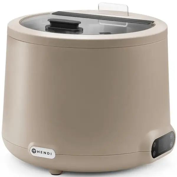 De HENDI UNIQ soepketel is ontworpen door de beroemde Nederlandse ontwerper Robert Bronwasser. Zijn moderne en luxe design vormt een blikvanger op elk buffet en is verkrijgbaar in 5 stijlvolle kleuren (zwart, wit, groen, rood en beige).