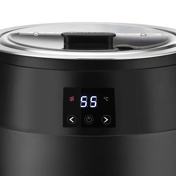 Via de touchbediening met helder digitaal display stel je eenvoudig de gewenste temperatuur in, met een bereik van 40°C/90°C, en de soepketel zorgt dat de inhoud stabiel op de ingestelde temperatuur wrodt gehouden. Dankzij het droogverwarmingssysteem is het daarbij niet nodig om een watertank te vullen of te controleren en de oververhittingsbeveiliging zorgt voor extra gebruiksveiligheid.