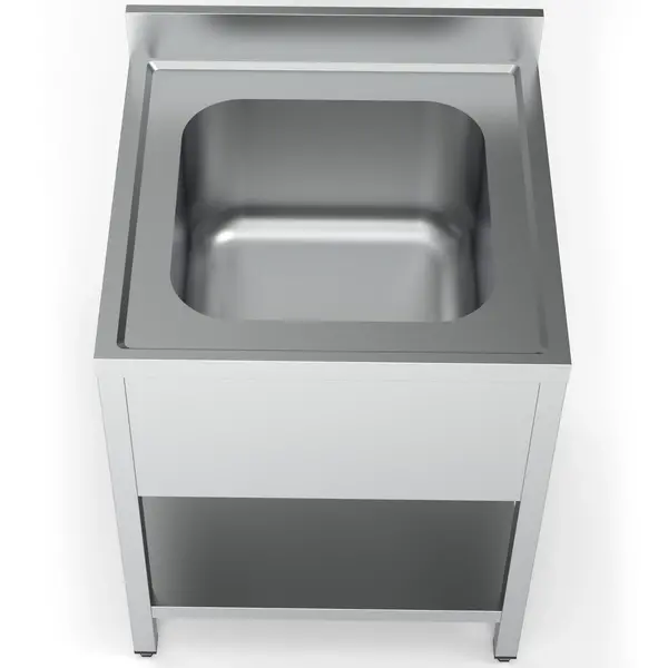 Spoeltafel | ESSENTIAL | RVS | 1 Spoelbak (Midden) | Bodemschap | Achteropstand | Zelfmontage | 700x700x850(h)mm
