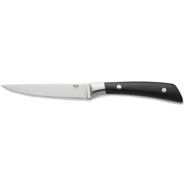 De steakmessen van het merk CARLOS combineren een krachtige uitstraling met een luxe, natuurlijke look dankzij de zwarte pakkahouten handgreep. Het ontwerp zorgt voor een stevige grip en past goed bij zowel informele als professioneel gedekte tafels.