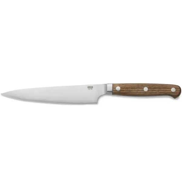 De steakmessen van het merk CARLOS combineren een krachtige uitstraling met een warme, natuurlijke look dankzij de notenhouten handgreep. Het ontwerp zorgt voor een stevige grip en past goed bij zowel informele als professioneel gedekte tafels.