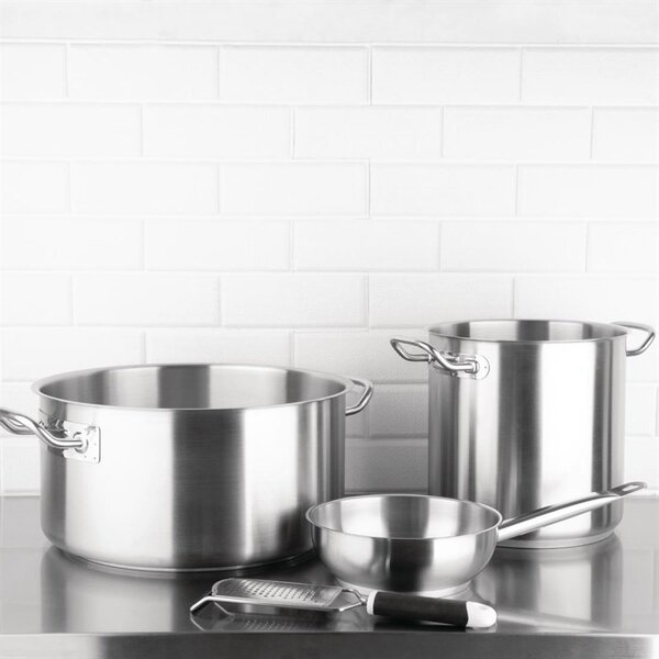 Professionele sauteerpan van Vogue, een populaire keuze voor de professionele keuken. Gemaakt van sterk 18/10 RVS met een aluminium bodem. Geschikt voor alle warmtebronnen, inclusief inductie. Voorzien van gelast, koelblijvend handvat met handig ophangoog.