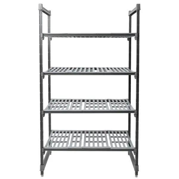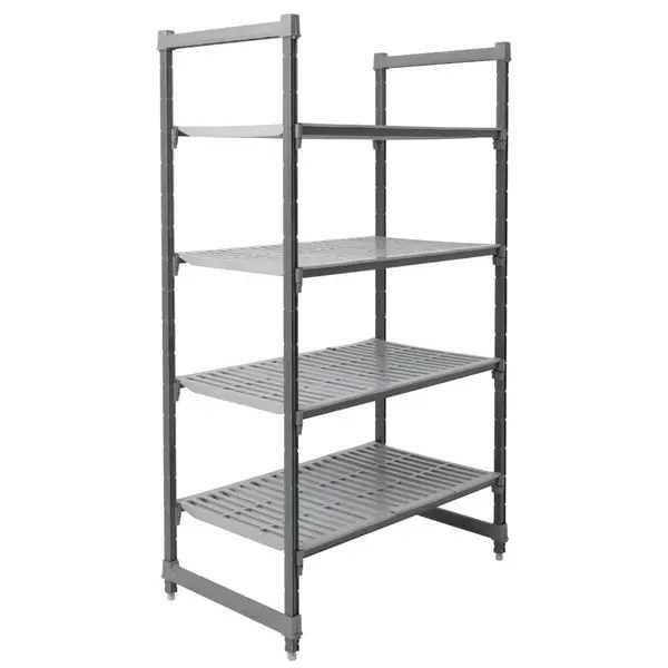 De 4 schappen hebben openingen voor luchtcirculatie - vooral bij droge voedingsmiddelen als rijst en aardappels erg belangrijk - en hebben een draagkracht tot maar liefst 272 kg per schap (gelijk verdeeld). De glasvezel- en harscomposietconstructie, met HACCP-conforme en vaatwasmachinebestendige schappen, is zeer sterk en makkelijk schoon te maken. Het materiaal maakt de stellingen geschikt voor temperaturen tussen -38°C en 88°C, ideaal voor zowel geconditioneerde als ongeconditioneerde én cold opslag.