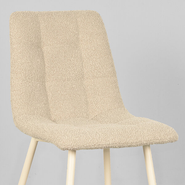 Stoel Nino | Zand | Boucle | Wit Metalen Frame | 4 stuks