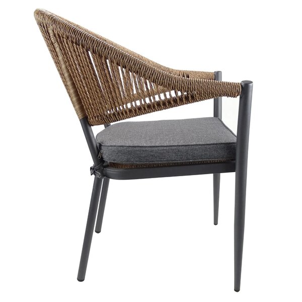 Deze horeca terrasstoel is een stijlvolle en comfortabele keuze voor elk horecaterras. Het lichte, weerbestendige aluminium frame garandeert duurzaamheid en gebruiksgemak, terwijl het kunststof vlechtwerk in een fris grijs/cognac kleur zorgt voor een natuurlijke, uitnodigende uitstraling. De stoel is ontworpen om intensief gebruik moeiteloos te doorstaan en biedt jouw gasten een ontspannen en gastvrije zitervaring.