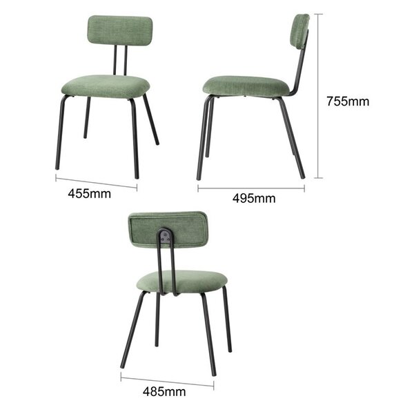 Stoelen | FAIRFIELD | Stof/Metaal | Groen | Zwart Frame | Indoor | Stapelbaar | 2 Stuks | 485x495x755(h)mm