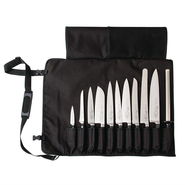 - Hoge kwaliteit stoffen foedraal voor de opslag van 11 professionele messen. Voorzien van een geborduurd Dick logo en ideaal om uw messen veilig een makkelijk mee te kunnen nemen. Let op: inhoud niet inbegrepen.