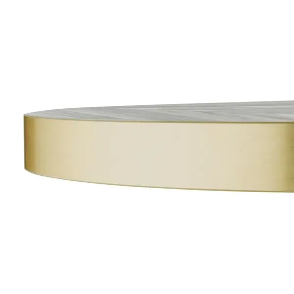 Het tafelblad heeft een stevige constructie van 48 mm dik, wat zorgt voor extra stabiliteit en een lange levensduur bij dagelijks gebruik. De gouden randafwerking van aluminiumfolie geeft het blad een luxe accent en beschermt de randen tegen lichte stoten.