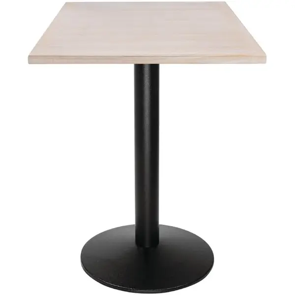 Het tafelblad is opgebouwd uit MDF, een geperste houtvezelplaat die zorgt voor een stevige en stabiele basis, met eikenfineer voor een natuurlijke houtlook. Deze combinatie maakt het blad geschikt voor intensief gebruik in de horeca. Dankzij het gladde oppervlak is het blad eenvoudig schoon te maken, waardoor onderhoud minimaal blijft en vervangingskosten worden beperkt.