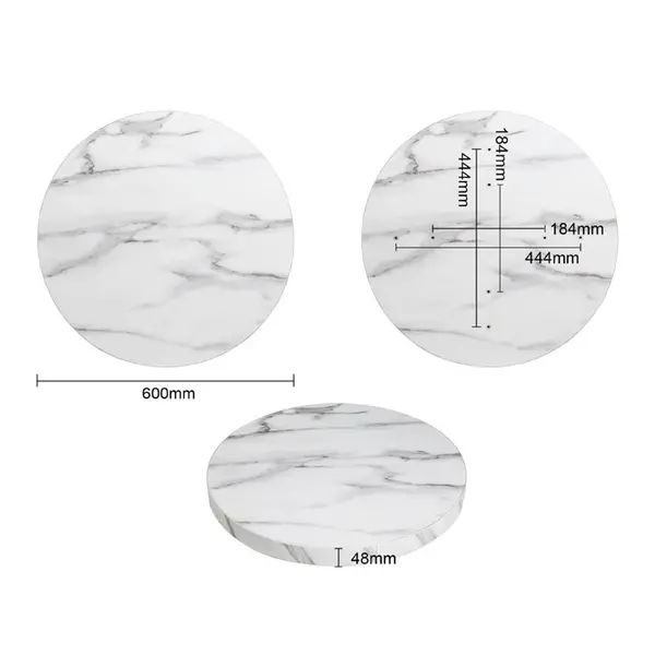 Tafelblad | Marmerlook | Indoor | Voorgeboord | Ø600mm