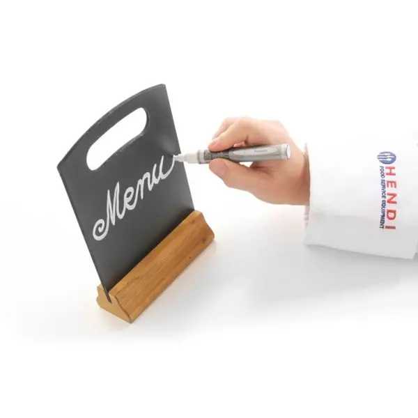 De HENDI tafelkrijtborden zijn uitgevoerd in zwart, met stevige houten voeten, gemaakt van MDF (Medium-Density Fibreboard). De borden zijn ideaal voor het presenteren van menu’s, aanbiedingen of speciale acties op tafels in horecazaken. Het oppervlak is geschikt voor krijt en krijtstiften en kan eenvoudig schoongeveegd worden, zodat de borden herhaaldelijk gebruikt kunnen worden.