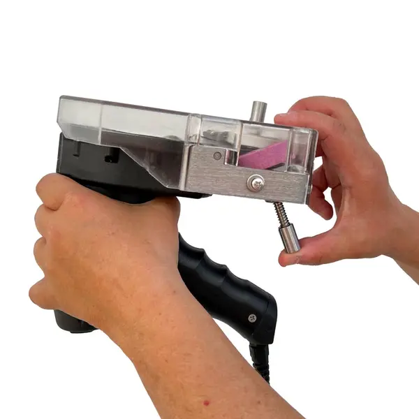 • Snel & eenvoudig – mes in de houder, een paar keer langs de slijpschijf en klaar voor uren snijcomfort.