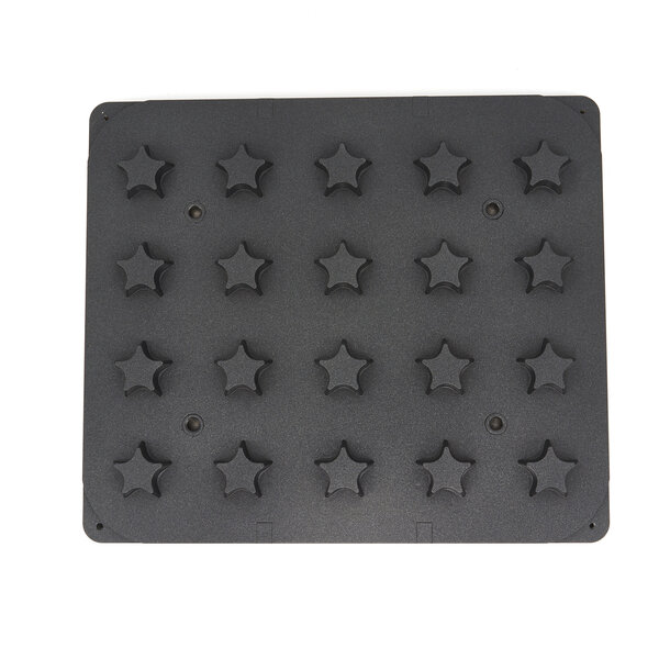 Deze tartelettevorm van Maxima is geschikt voor de tartelettemachine MAX-9374300 en ideaal voor het maken van kleine gebakjes. De bakplaat heeft stervormige holtes met een binnenmaat van 46 mm, een buitenmaat van 62 mm en een hoogte van 18 mm, wat zorgt voor een mooie diepte van de tartelettes. De vorm biedt ruimte voor 20 tartelettes tegelijk.