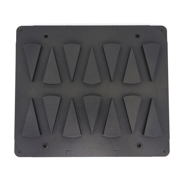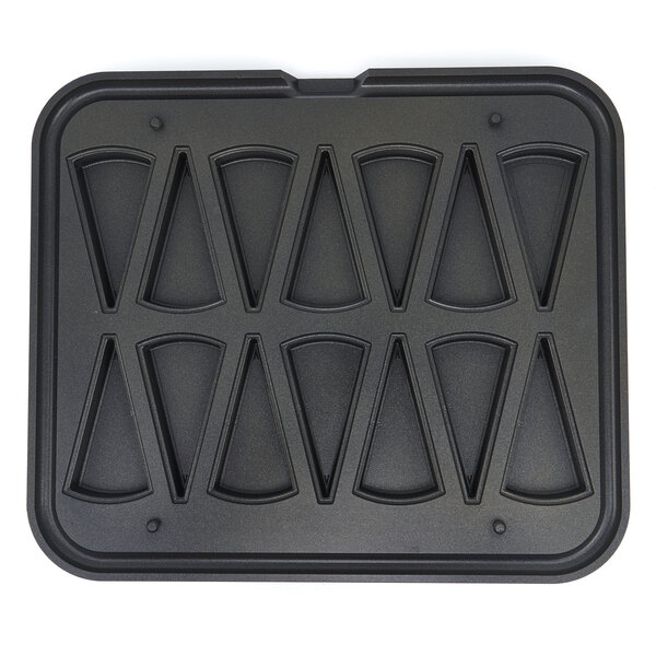 Deze tartelettevorm van Maxima is geschikt voor de tartelettemachine MAX-9374300 en ideaal voor het maken van taartpunten. De bakplaat heeft taartpuntvormige holtes met een binnenmaat van 100 x 48 mm, een buitenmaat van 110 x 60 mm en een hoogte van 19 mm, wat zorgt voor een mooie diepte van de tartelettes. De vorm biedt ruimte voor 14 tartelettes.