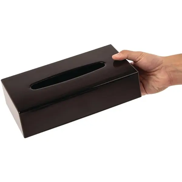 Deze zwarte rechthoekige tissuebox van Bolero is ideaal voor gebruik in hotelkamers, aan de receptie of in badkamers, kleedkamers en wachtruimtes. De glanzende zwarte afwerking zorgt ervoor dat een standaard tissuedoos direct wordt omgezet in een stijlvol en opvallend accessoire dat perfect past binnen een professionele en verzorgde omgeving.