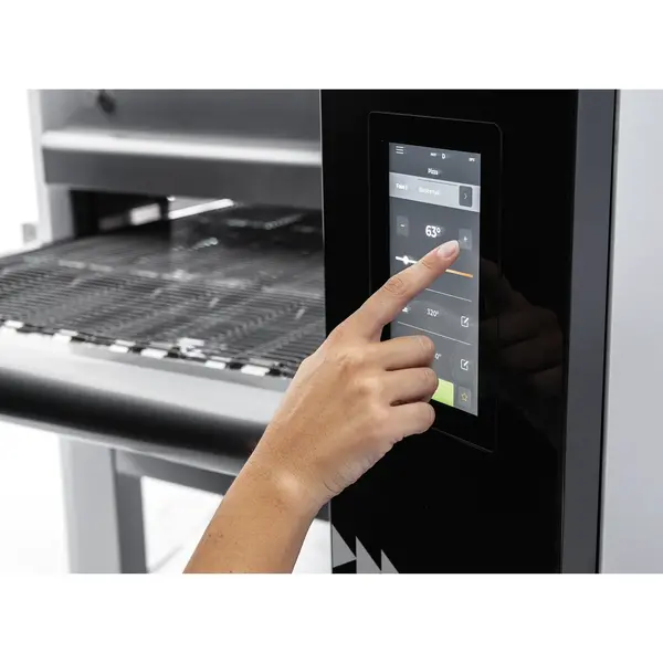 - Digitaal bedieningspaneel is intuitief waardoor de aan en uit schakeltijd, de bandsnelheid en de temperatuur van de oven kunnen worden ingesteld