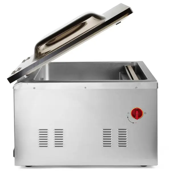 Het apparaat heeft een zeer duurzaam ontwerp met de behuizing en sealkamer in hoogwaardig RVS en het deksel in stevig semitransparant kunststof, zodat het sealproces in de gaten kan worden gehouden. De bolling in het deksel maakt het mogelijk om grotere porties te verwerken, terwijl hoogwaardige oliepomp een hoge druk biedt en zeer snel en efficiënt vacuüm treckt.