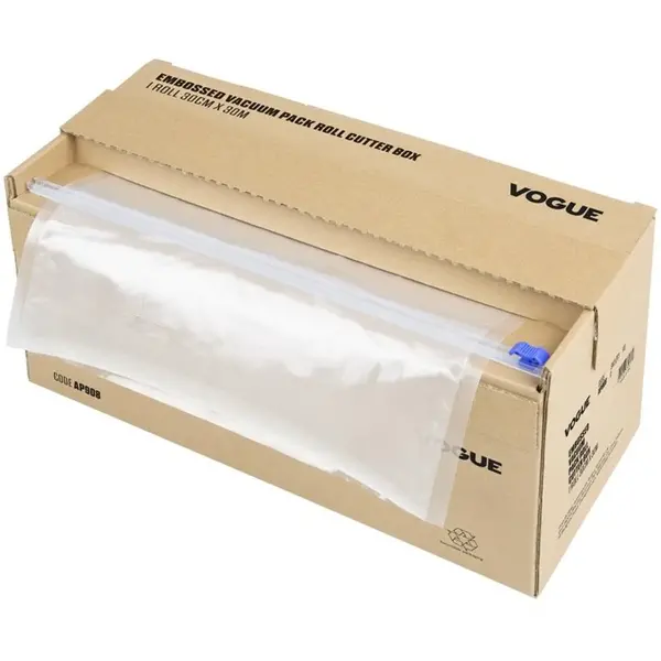 De Vogue vacuümverpakkingsrol met snijbox is een veelzijdige en praktische oplossing voor het bewaren en bereiden van je ingrediënten. De rol is 300 mm breed en 30 m lang en wordt geleverd met een ingebouwde snijmachine, zodat je vacuümverpakkingszakken altijd perfect op maat kunt snijden, ongeacht de hoeveelheid die je wilt bewaren. Je vacuümzakken beschermen je voedsel tegen uitdroging, vriesbrand, schimmel, vocht, insecten en geuren, en kunnen je voedsel tot 3 tot 5 keer langer bewaren dan conventionele opslagmethoden. Je kunt ze gebruiken in de vriezer, magnetron en tijdens het koken, en ze passen op alle commerciële vacuümverpakkingsmachines, inclusief kamer- en externe vacumeermachines. Dit maakt de Vogue vacuümverpakkingsrol een hygiënische, nette en gebruiksvriendelijke toevoeging aan je keuken.