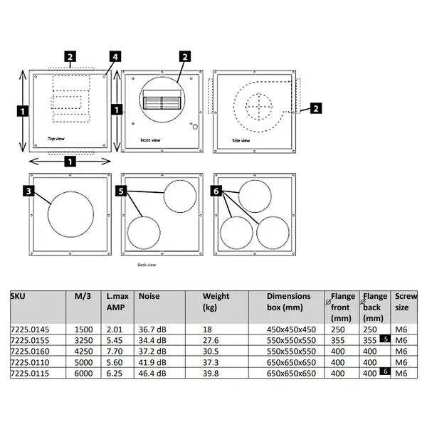 Inbox Afzuigmotor | 3250m³/u | Centrifugaal | 5.45A | 0.45kW (230V) | 550x550x550(h)mm