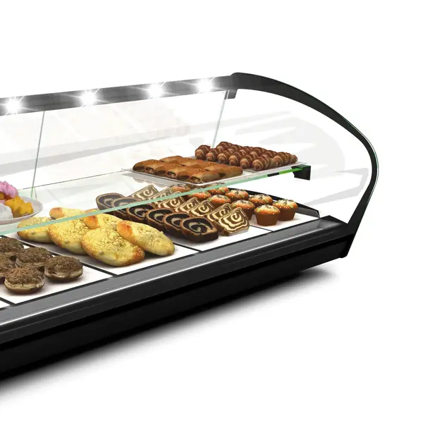 De vitrine is voorzien van efficiënte droge statische verwarming vanuit de bodem met een temperatuur van 60°C/70°C, die eenvoudig instelbaar is via de digitale bediening met duidelijk display.