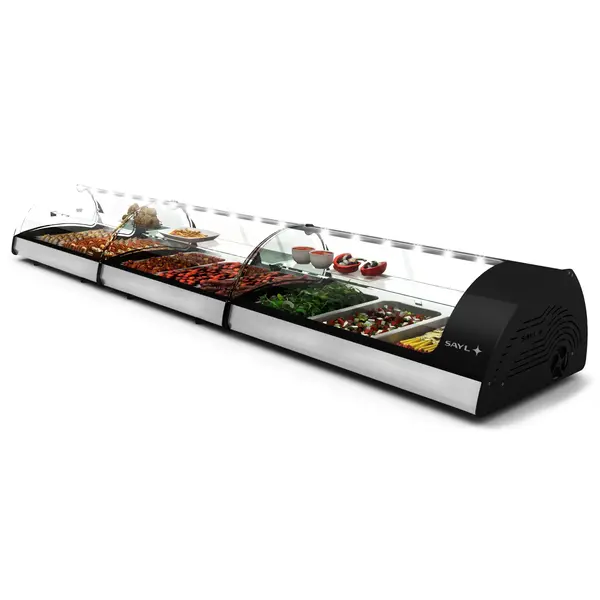 De SPLENDID-serie van het Spaanse SAYL biedt tafelmodel koelvitrines en warmhoudvitrines met modern design, hoge kwaliteit materialen en zéér ruime displayruimte, wat de vitrines zeer geschikt maakt voor bijvoorbeeld warme en koude tapas.