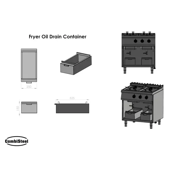 Deze RVS vet-/olieopvangbak is speciaal geschikt voor gebruik bij het aftappen van de staande friteuses uit de BASE 700 en BASE 900 kooklijnen van CombiSteel. De opvangbak is uitgevoerd met RVS filter, voor optimale kwaliteit van de frituurolie, en past precies onder 1 kuip in de onderkast.