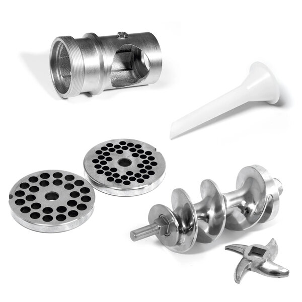Het apparaat heeft roosterformaat N°22 (Ø 82 mm) en wordt standaard geleverd met twee roosters met perforatiediameter van 6 mm en 8 mm. Ook zijn er roosters los verkrijgbaar met perforatiesdiameters van 2 mm, 3 mm en 4,5 mm.