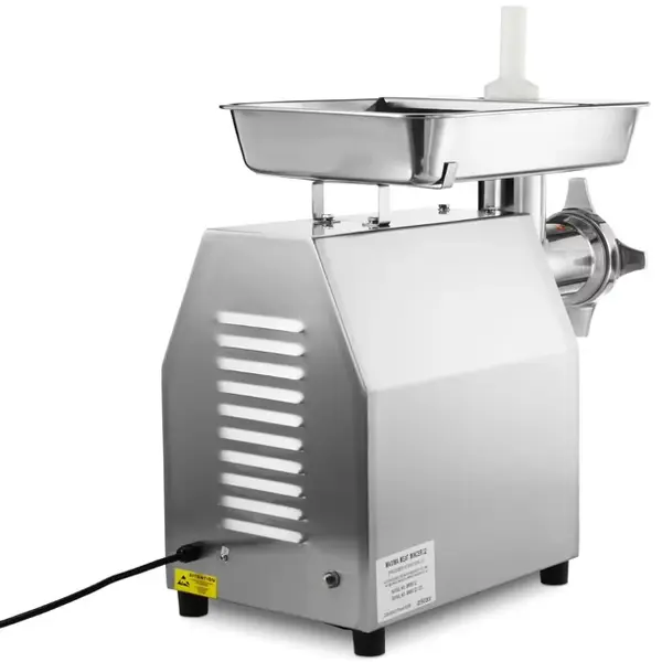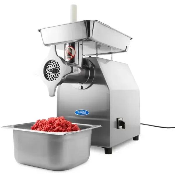 Deze Maxima vlees-/gehaktmolen is een robuuste, professionele tafelmodel vleesmolen die ideaal is voor restaurants en slagerijen. Met een vermogen van 1,5 kW verwerkt hij moeiteloos tot 320 kg vlees per uur, waardoor hij geschikt is voor continu gebruik. De volledig RVS behuizing en schaal zorgen voor duurzaamheid en hygiëne. Dankzij de verwijderbare maalkop is het apparaat praktisch in gebruik en snel klaar voor reiniging. De molen wordt standaard geleverd met twee roosters (6 en 8 mm), kruismessen, een stopper en een worstenvuller, wat hem veelzijdig inzetbaar maakt voor gehakt, worsten en meer.