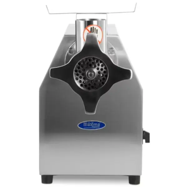Het gebruiksgemak wordt verder vergroot door de twee standen (vooruit en achteruit), waarmee vastlopers eenvoudig worden verholpen. De geharde stalen messen en schijven garanderen een gelijkmatig maalresultaat, terwijl de motor is voorzien van een veiligheidsbeveiliging. De onderdelen zijn eenvoudig schoon te maken met warm water en een mild reinigingsmiddel. Deze Maxima vleesmolen is een krachtige en betrouwbare keuze voor elke professionele keuken.