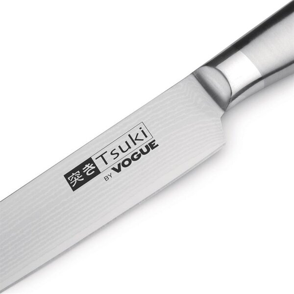 Snij moeiteloos stukken vlees met dit vleesmes van Vogue TSUKI Series 8. Het mes is vakkundig gemaakt, met een Japanse VG-10-RVS-kern met een hardheid van Rockwell 60 waardoor het mes zeer duurzaam is. Dit gebalanceerde en geslepen mes van Vogue TSUKI is een professioneel mes en perfect voor koks van ieder niveau. Het heft biedt een comfortabele grip. Vogue TSUKI-messen staan bekend om hun duurzame kwaliteit, dus dit mes is een perfecte aanvulling op jouw messencollectie.