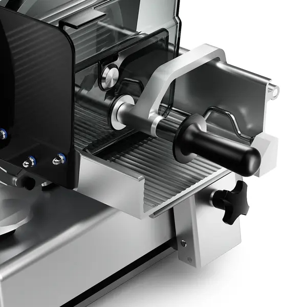 De snijdikte is dubbel instelbaar, namelijk standaard van 0 tot 24 mm én met een speciale fijninstelling zéér nauwkeurig tussen 0 en 3 mm, voor optimale controle en precisie. Daarnaast zorgt de innovatieve mesafdekking met intelligent snelsluitsysteem voor een veilige en eenvoudige montage. Zo combineert de Bizerba VSV precisie, veiligheid en gebruiksgemak in één professionele vleessnijmachine.