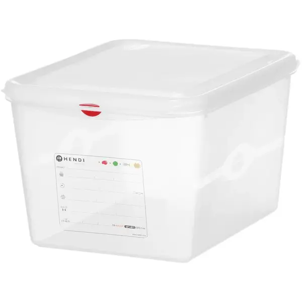 De voedseldoos is voorzien van kleurclips (groen, geel, blauw en rood volgens de HACCP-richtlijnen) en een geïntegreerd HACCP-label, te gebruiken met uitwisbare markers (apart verkrijgbaar) voor eenvoudige controle van de inhoud. De doos is geurbestendig, luchtdicht en geschikt voor invriezen, koelen en warme opslag, met een temperatuurbestendigheid van -40ºC tot +100ºC.