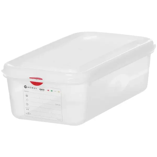 Deze kunststof voedseldoos van HENDI heeft een formaat van 1/3 GN en is gemaakt van hoogwaardig polypropyleen. De doos is duurzaam, stapelbaar en voorzien van een veilig, lekbestendig deksel.