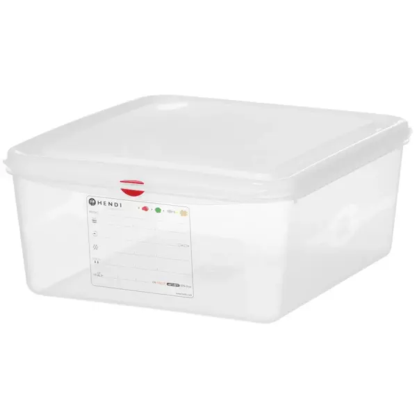 De voedseldoos is voorzien van kleurclips (groen, geel, blauw en rood volgens de HACCP-richtlijnen) en een geïntegreerd HACCP-label, te gebruiken met uitwisbare markers (apart verkrijgbaar) voor eenvoudige controle van de inhoud. De doos is geurbestendig, luchtdicht en geschikt voor invriezen, koelen en warme opslag, met een temperatuurbestendigheid van -40ºC tot +100ºC.