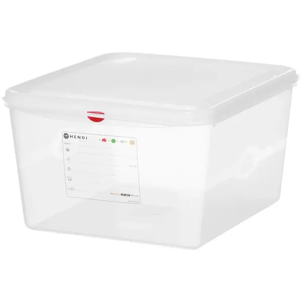De voedseldoos is voorzien van kleurclips (groen, geel, blauw en rood volgens de HACCP-richtlijnen) en een geïntegreerd HACCP-label, te gebruiken met uitwisbare markers (apart verkrijgbaar) voor eenvoudige controle van de inhoud. De doos is geurbestendig, luchtdicht en geschikt voor invriezen, koelen en warme opslag, met een temperatuurbestendigheid van -40ºC tot +100ºC.